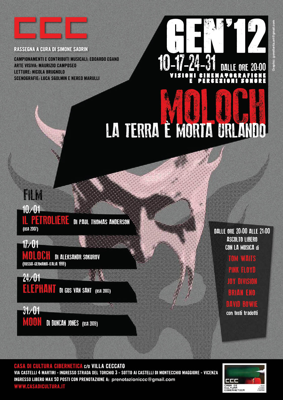 Si è conclusa martedì 31 gennaio 2012,con numerosi e interessati partecipanti, la rassegna di cinema e ascolto musicale MOLOCH – LA TERRA È MORTA URLANDO, a cura di Simone Saorin.