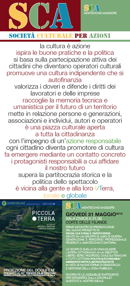 Presto vi spiegheremo le procedure della Società Culturale per Azioni che sarà presentata ufficialmente giovedì 31 maggio in Sala Civica a Montecchio Maggiore.