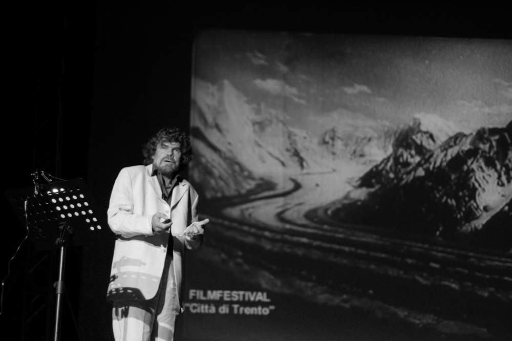 Riportiamo sotto alcuni scatti della serata del 3 settembre 2004 che portò per la prima volta fuori dal Festival di Trento la serata principale della rassegna e fece iniziare a Messner un tour postfestival che arriva fino ai giorni nostri. Le foto sono di Alessandro Pianalto.