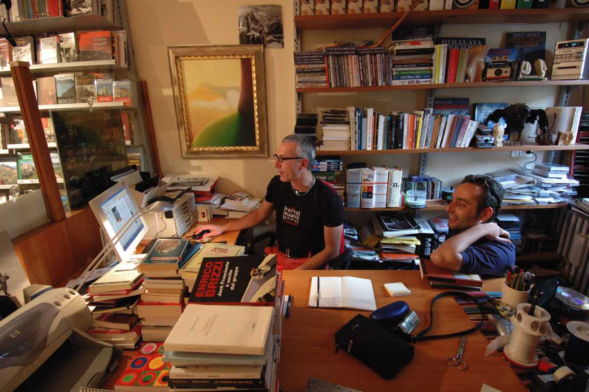Per spiegare il mio lavoro di libraio-volante (definizione di Paolo Rumiz, per certe mie “rarefatte” attitudini), come bibliofilo e ricercatore, potrei ricordare le mie performance verbali, davanti a montagne di libri, care agli amici, e i relativi collegamenti tra essi che pochi altri potrebbero mettere assieme. Non per chissà quali mie irraggiungibili qualità – sempre da verificare face to face – ma semplicemente considerando il mio “dis-sennato” (che mi piacerebbe ampliare in “dis-parato di senno”)… dicevo, dunque, per il mio dissennato percorso e le straordinarie amicizie culturali coltivate negli anni. Dissenato? Potrei dire diversamente quando vedo i miei figli che osservano con occhi sbarrati le figure di un padre che passa indenne tra ciclopiche pile traballanti di libri, montagne fumanti, ciminiere vertiginose, 8000 metri di quota, cimiteri vaganti, musicisti siderali, intriganti università, strade inquinate, questure indaganti, inutili sport, basi di morte?