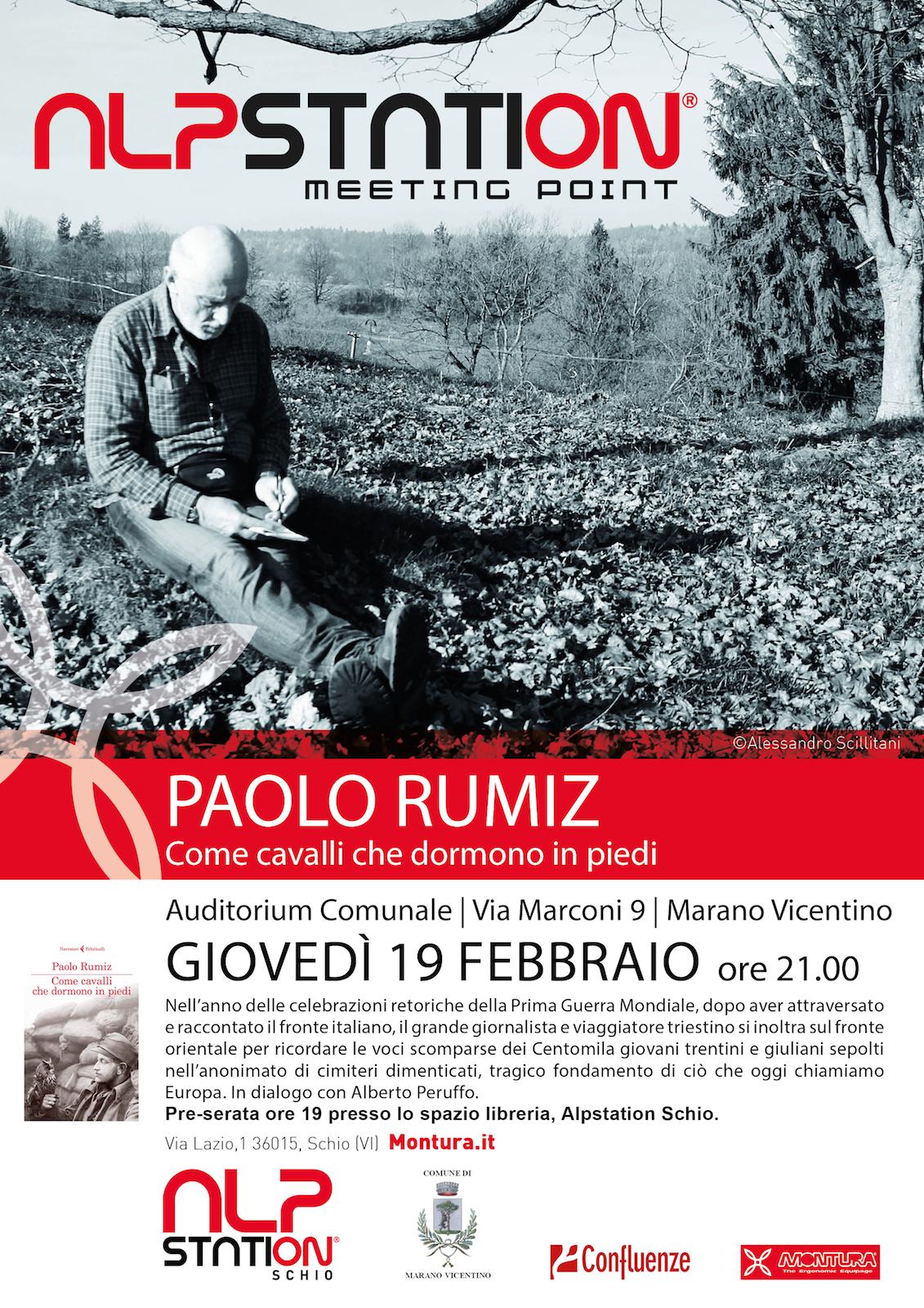 Giovedì 19 febbraio, alle ore 21 presso l’Auditorium di Marano Vicentino, in via Marconi 9, altro grande incontro della serie ALPSTATION MEETING POINT organizzato in collaborazione con il Comune di Marano Vicentino. Protagonista questa volta è Paolo Rumiz, nell’unica data della provincia di Vicenza dove presenterà il suo ultimo importante libro.