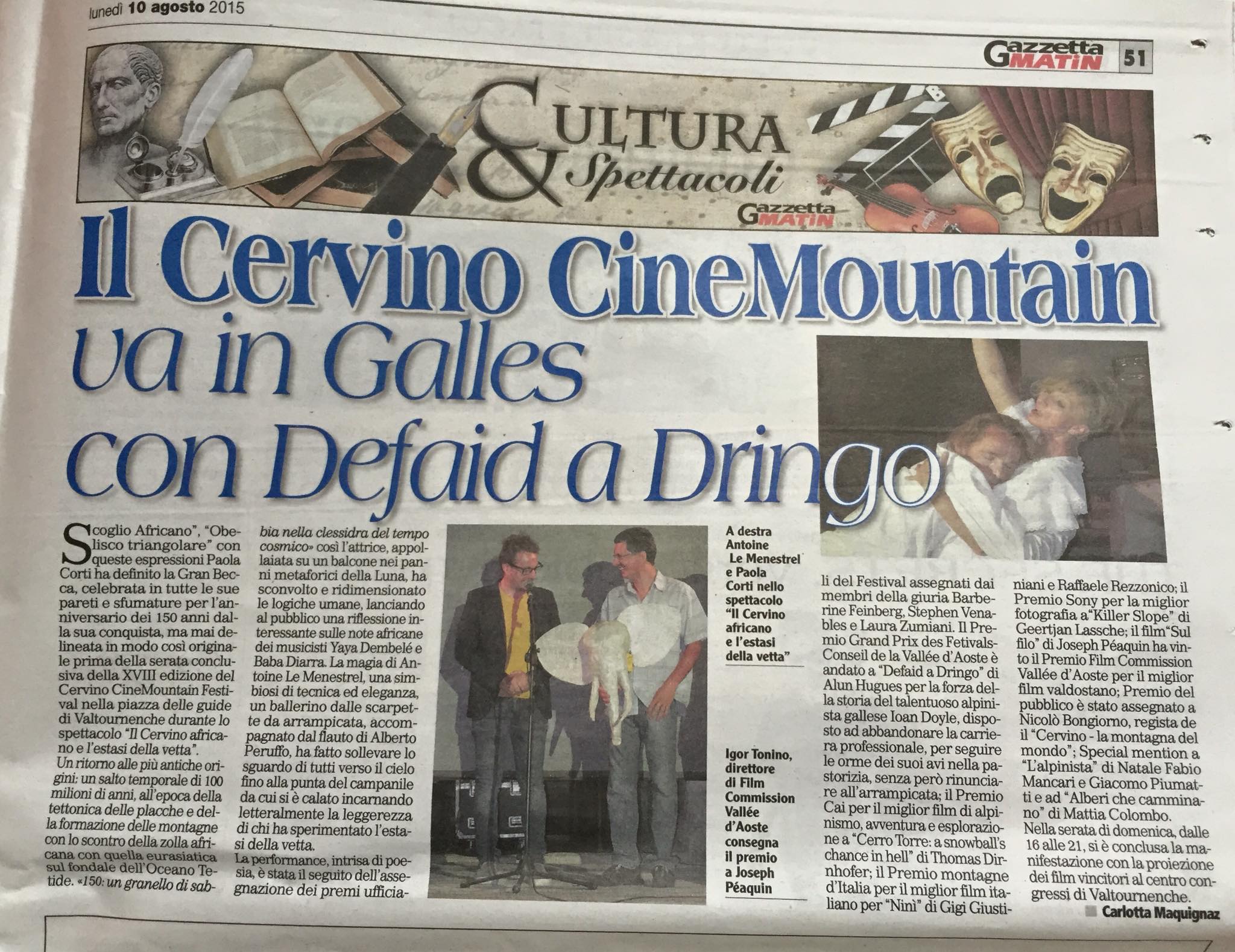 cervino 23 agosto 10, 2015 Return to: IL CERVINO AFRICANO E L’ESTASI DELLA VETTA | 8 agosto 2015 International Ensemble | VALTOURNENCHEFull resolution (2048 × 1580) Image navigation Previous Image Condividi: Stampa (Si apre in una nuova finestra) Stampa Condividi su Facebook (Si apre in una nuova finestra) Facebook Condividi su X (Si apre in una nuova finestra) X Invia un link a un amico via e-mail (Si apre in una nuova finestra) E-mail Condividi su LinkedIn (Si apre in una nuova finestra) LinkedIn Mi piace Caricamento...