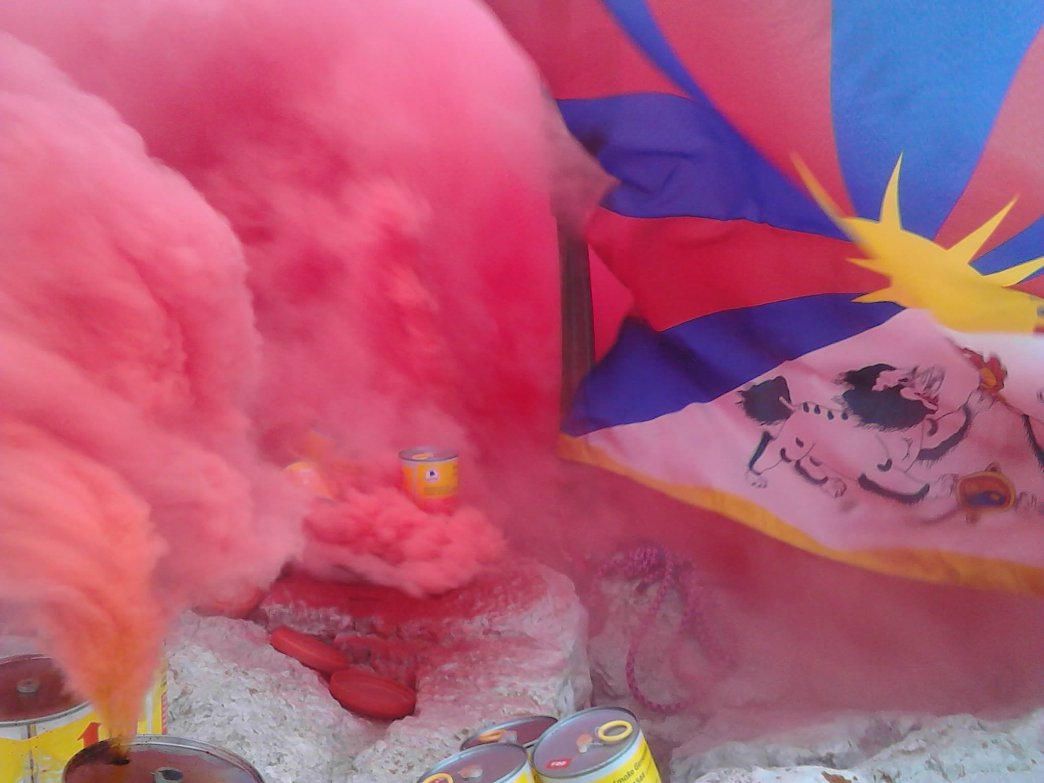 Le Dolomiti Abbracciano I Diritti Umani 13 settembre // Cima Grande, Cima Ovest, Cima Piccola. Accensione alle ore 12.30, nonostante le nuvole che avvolgevano la parte superiore delle Tre Cime di Lavaredo. 3 cordate per 3 cime, raggiunte con un gran carico di fumogeni (11.37 – 11.45 – 11.59). Con Giacomo Peruffo, Leonardo Meggiolaro, Andrea Santacà, Enrico Padoan e François Geco. L’importante è che si faccia, non che si veda.