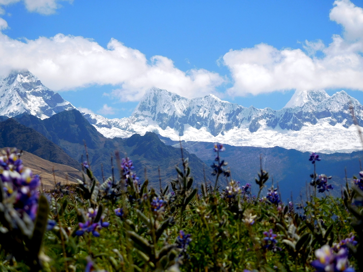 Fiori e Cordillera, verso nord. Dietro le nubi svetta l'Alpamayo