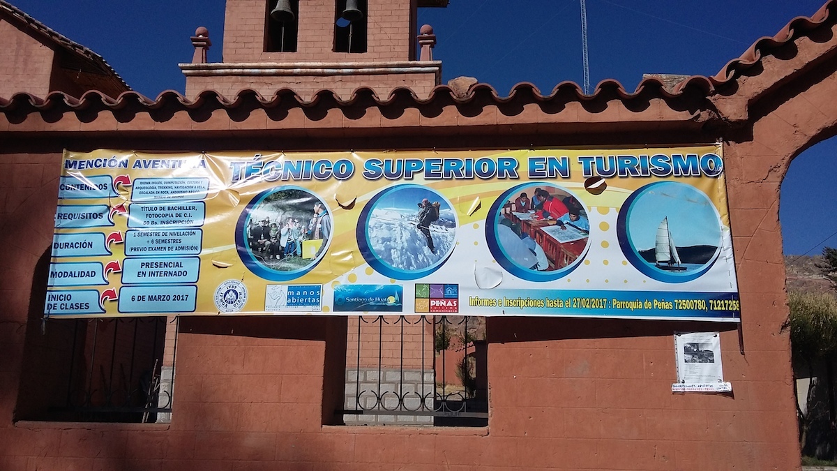 L'ingresso della parrocchia con l'insegna della nuova Università Campesina