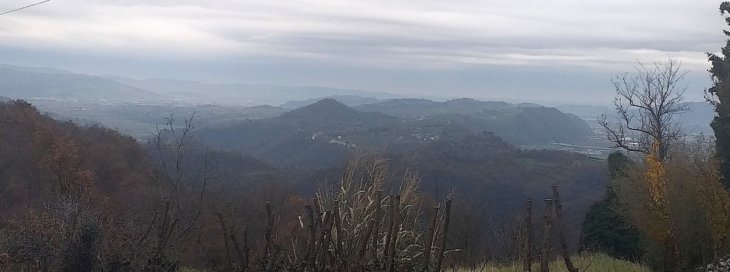 Chi sale sulla sommità del Monte Pulgo si rende conto di vivere in terre bellissime. Sotto gli occhi si alza l’indescrivibile – per forma e sospensione – ultimo piede dei Lessini, l’acrocoro dei Colli di Montecchio, separato da un impercettibile punto di collegamento con il resto del mondo: le grandi montagne, le Alpi e le Prealpi, da dove parte il nostro sguardo.