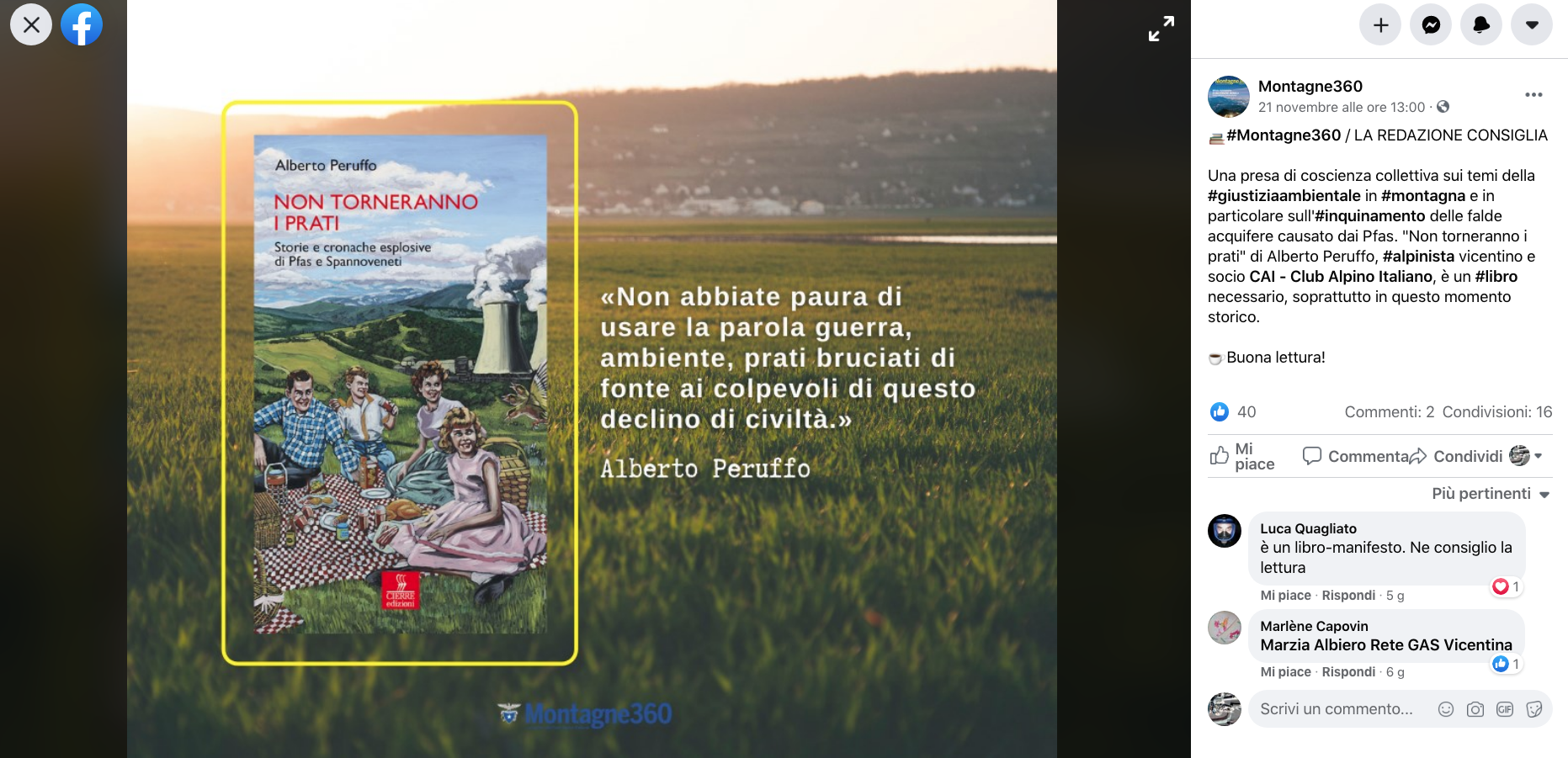Molto importanti anche i rilanci su FB di Montagne360, che riportiamo sotto.