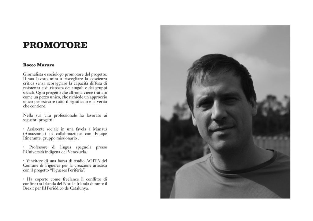 Giornalista e sociologo, nato nel 1981 a Terrades, Catalogna, sul confine con la Francia, a vista dei Pirenei, Rocco ci porterà a vedere come si vive nella periferia del “nostro” impero, l’Impero Tardocapitalista d’Occidente (così io lo chiamo), attraversando le terre di una Penisola Iberica che più di ogni altra parte d’Europa rischia la desertificazione per la scarsità d’acqua, il bene primario più prezioso. Bene ora fatto oggetto di finanza dalla Borsa, o avvelenato nel suo profondo, come nel Veneto, da cui vi scrivo. Rocco ci mostrerà la difficoltà di vivere causate dalle crisi dei grandi mercati, testimoniando il disagio dei piccoli negozi di vicinato, l’abbandono delle Terre Alte, l’umanità degli emarginati e dei nuovi arrivati, per andare a concentrarsi sulle grandi urbanizzazioni che sono state una costante sociale del secolo scorso, a livello globale, divenendo accentratrici della “distrazione di massa”, del turismo e soprattutto della disperazione per trovare pane e lavoro. Si pensi alle grandi megalopoli dell’America Latina, dove Rocco ha vissuto e insegnato, come presso le favele di Manau o l’Università indigena del Venezuela.