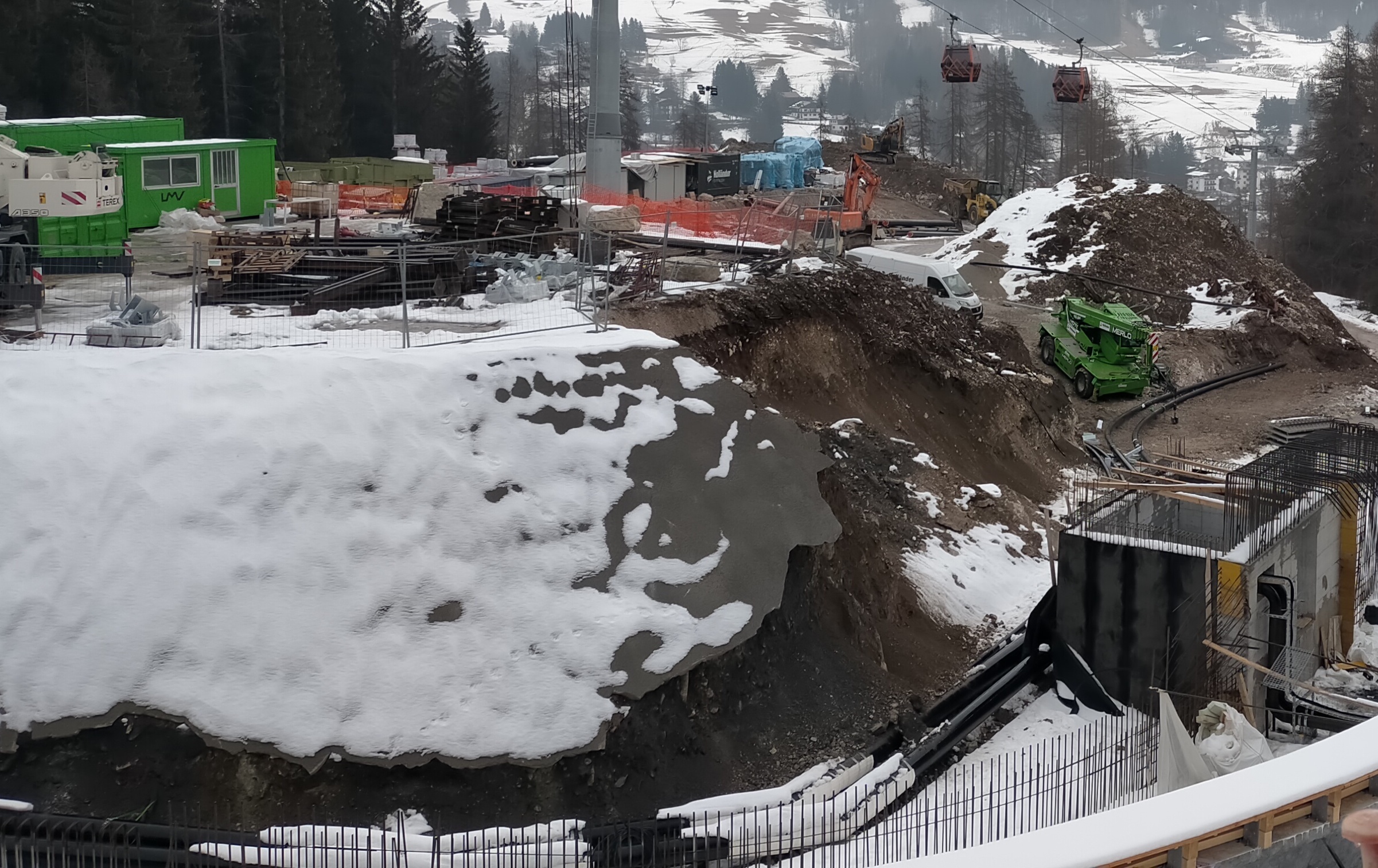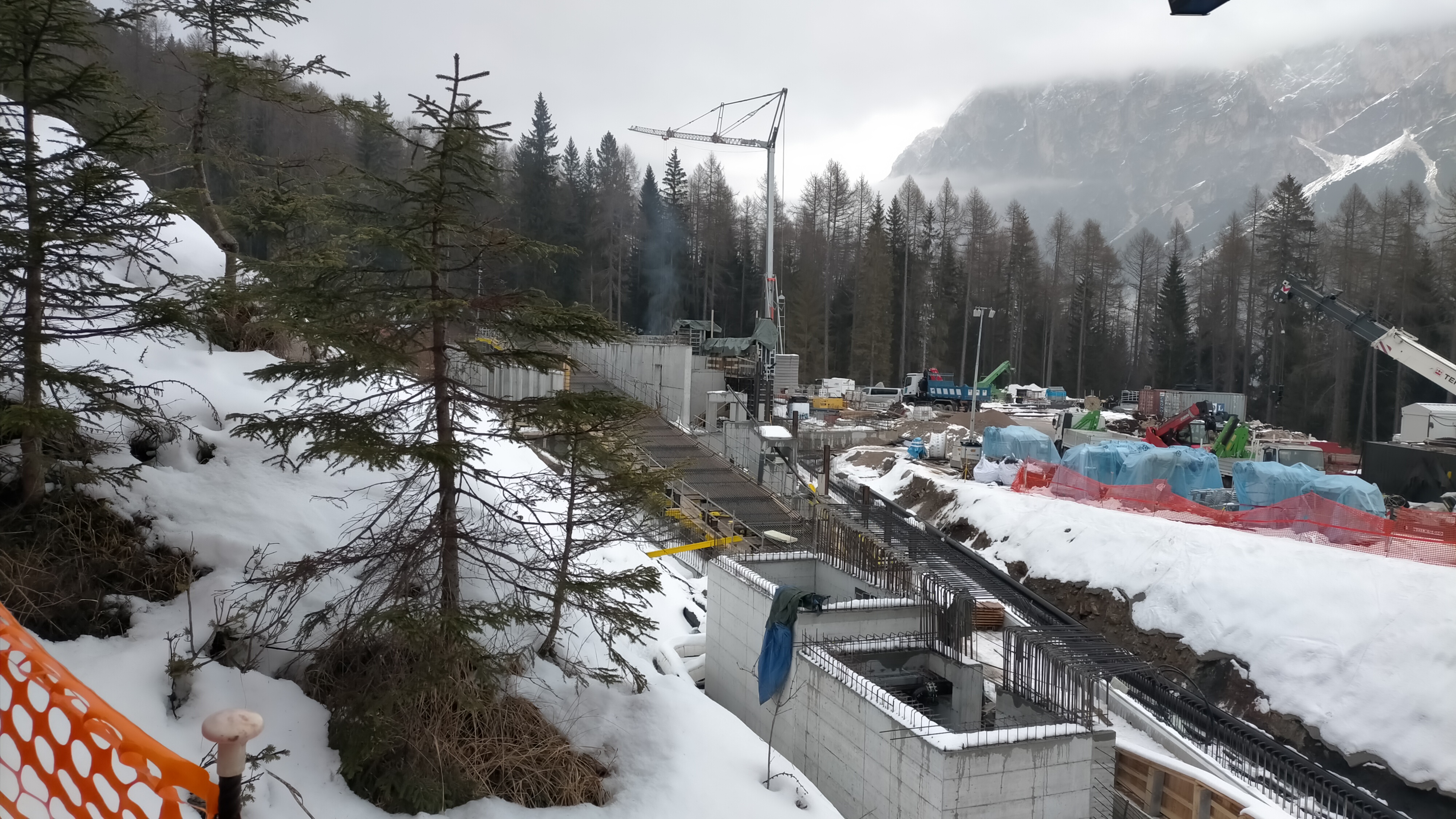 - dire come ha detto Zaia alla stampa nazionale che questo luogo era una discarica che inquinava [!] è un offesa alla stessa comunità ampezzana, alle sue memorie e alle sue cure. Certo, si doveva rivalorizzare il vecchio. Invece oggi questo luogo è diventato DI FATTO una discarica a cielo aperto. Con alberi abbattuti deliberatamente, senza controllo, lungo la recinzione. Con cantieri che hanno sventrato la montagna senza ritegno, gettando materiali chimici impermeabilizzanti, calcestruzzi (guardate le immagini), scarti di cantiere, gas di generatori e di ruspe, accelerando oltre misura la stessa operatività di lavoro, andando contro la stessa logica di cantiere, in ambiente estremamente delicato e di valore. Sta l’ARPAV monitorando le matrici ambientali compromesse?