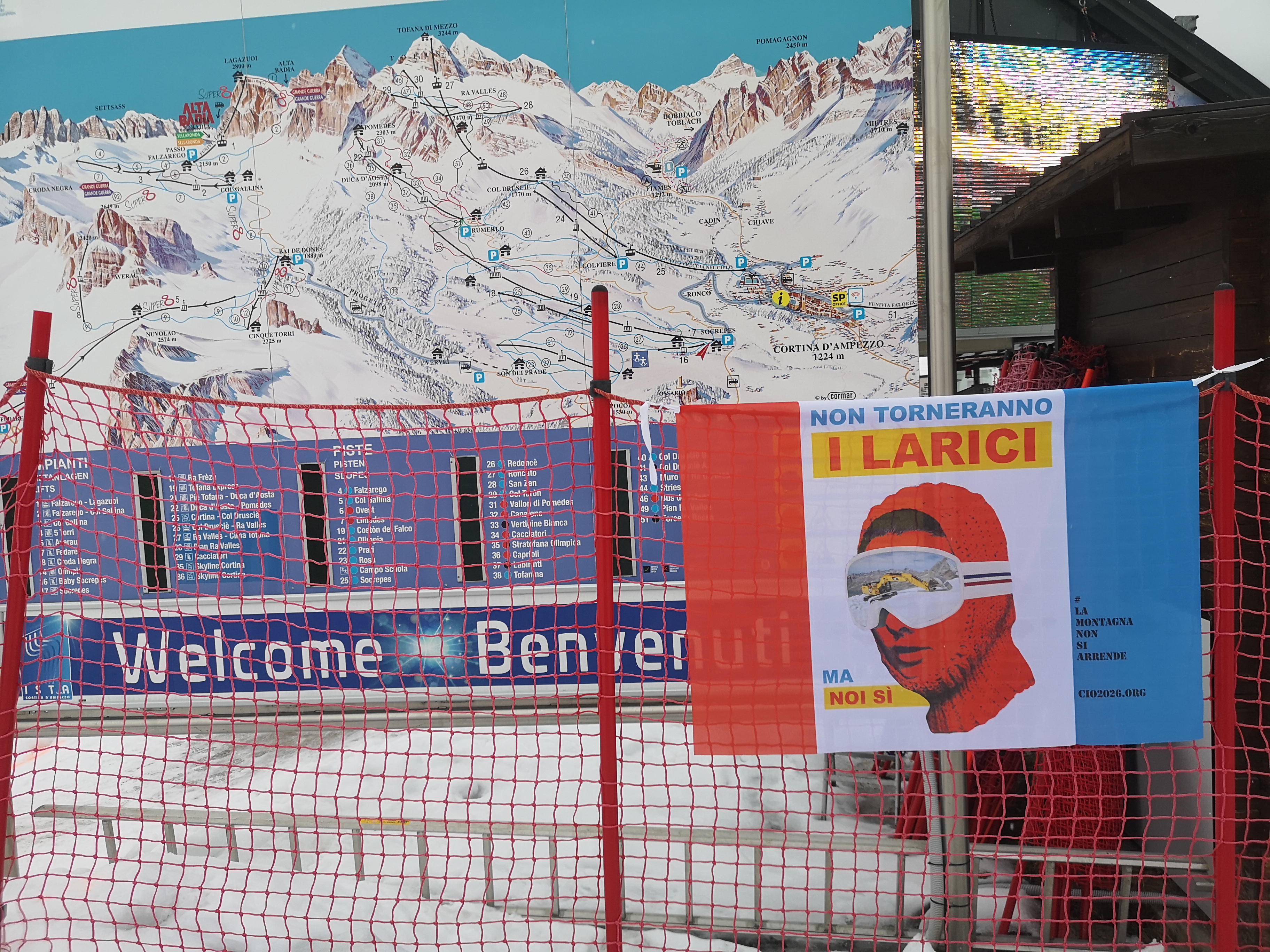 Secondo quanto visto, secondo nostra legittima e concreta opinione di attivisti e alpinisti amanti, conoscitori e difensori di queste montagne, accompagnati da autorevoli abitanti di Cortina ai margini del cantiere, non abbiamo altro da aggiungere se non: