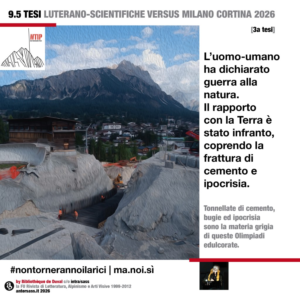 4. MW Italia. Bellezza e Armonia infrante: il vero volto di Milano-Cortina >> https://www.mountainwilderness.it/editoriale/inaugurazione-delle-olimpiadi-invernali-milano-cortina-2026-i-giochi-della-bellezza-e-dellarmonia/