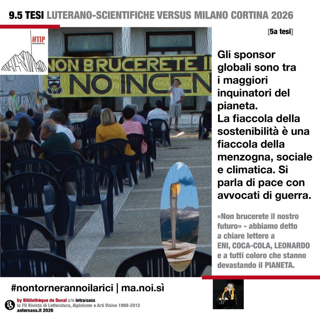 Martin Lutero lo fece nel XVI sec. per debellare la corruzione e la vendita meretrice di indulgenze messa in opera dai papi romani per pagare i debiti della più grande “fabbrica del mondo”, la Basilica di San Pietro in Vaticano, utile al controllo delle coscienze. Noi lo faremo versus Milano Cortina 2026.