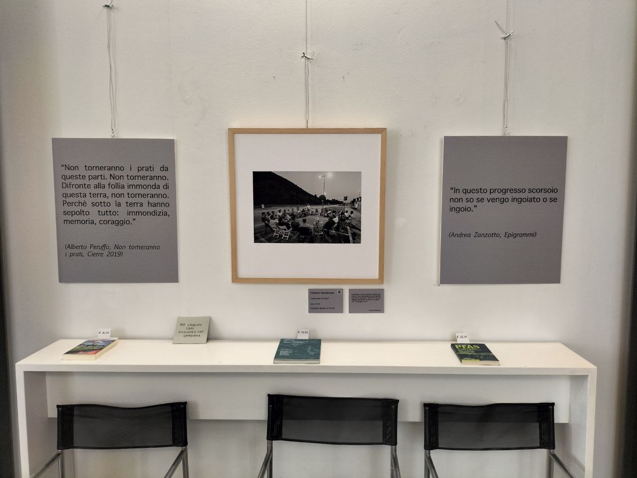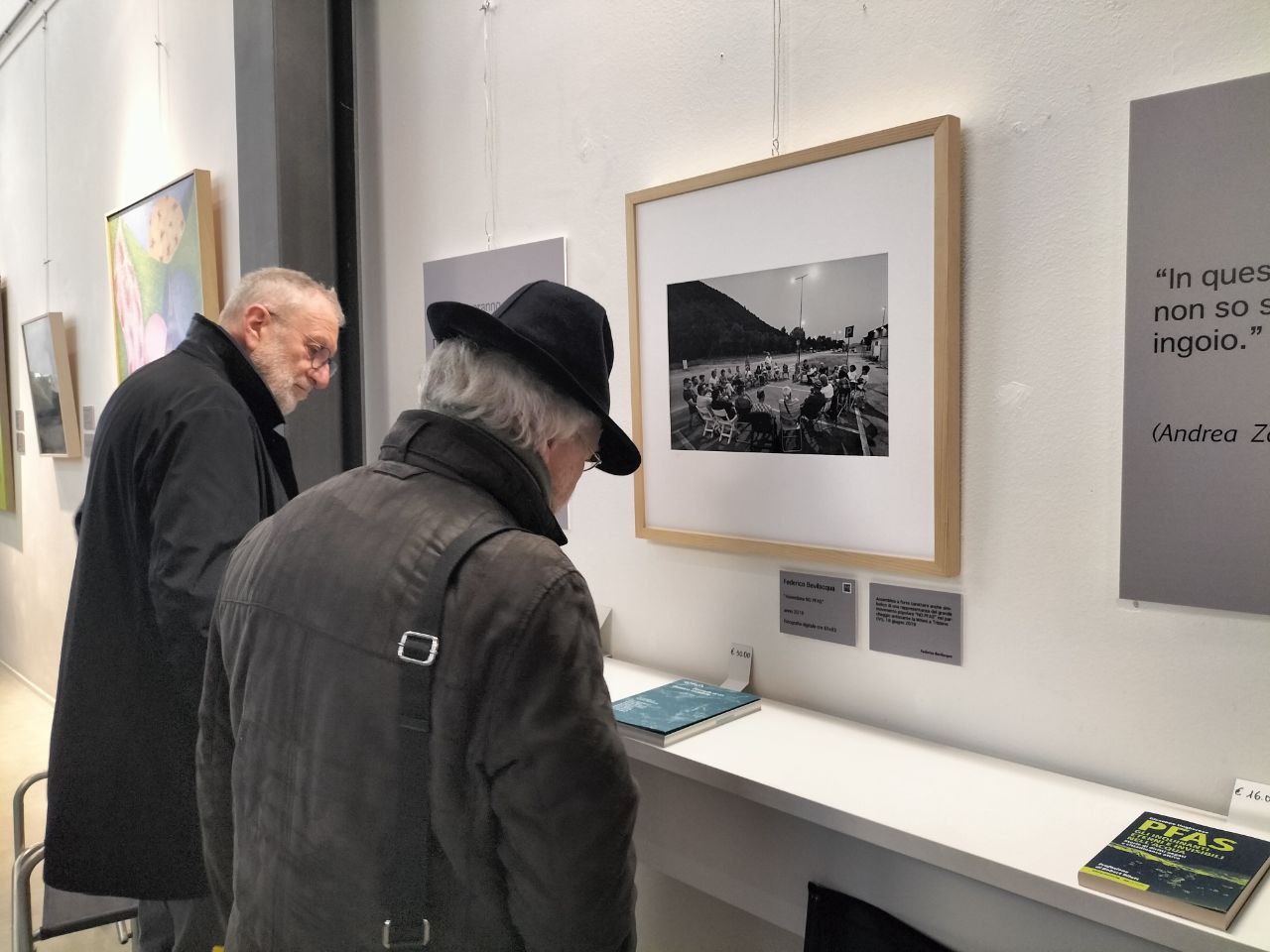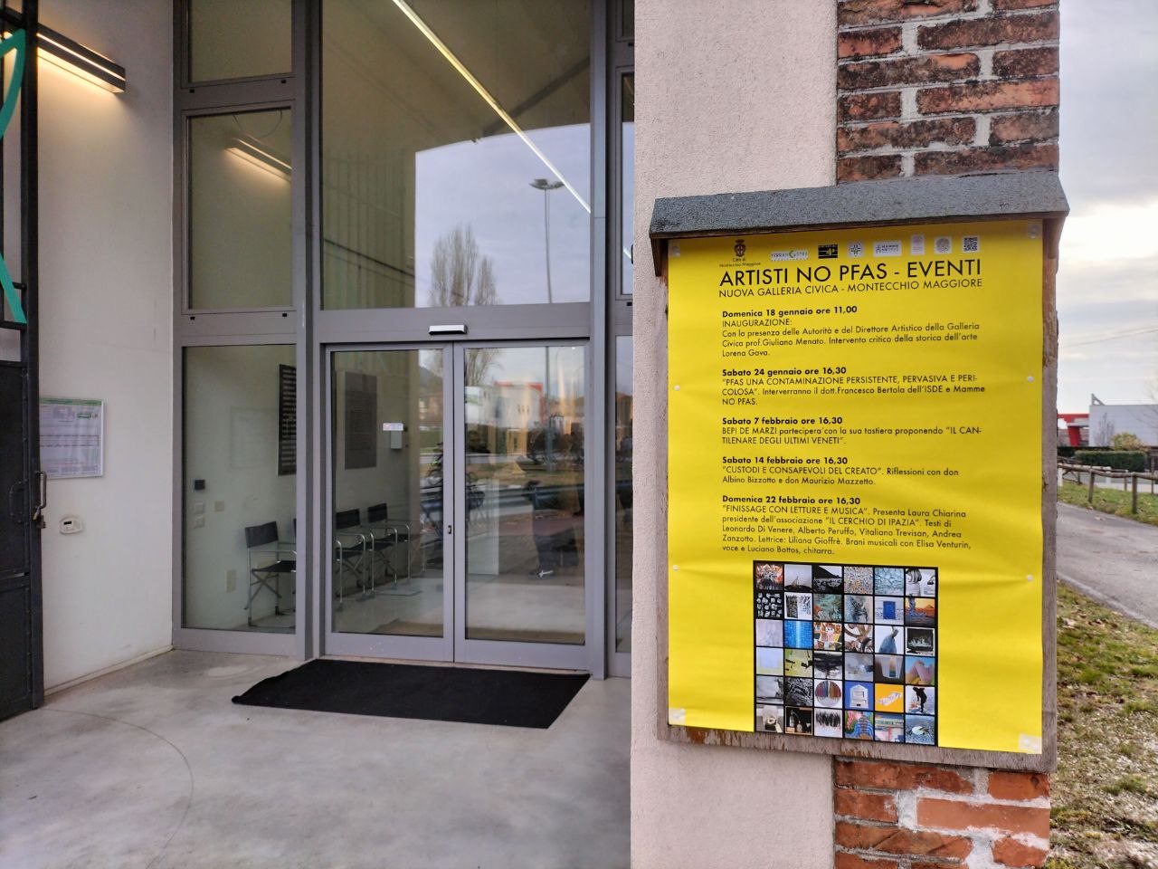 Prima di lasciarvi alla presentazione scritta sui social da Alberto Peruffo (montecchiano, leader storico del movimento no pfas), il giorno prima dell’inaugurazione, e con le foto di Federico Bevilacqua (fotografo protagonista della mostra con una serie dedicata al movimento no pfas, sul soppalco), e senza entrare nei dettagli della Nuova Galleria Civica che questo sito ha visto nascere e in parte promosso, facciamo seguire una breve sintesi di ARTE E PFAS, dai nostri archivi.