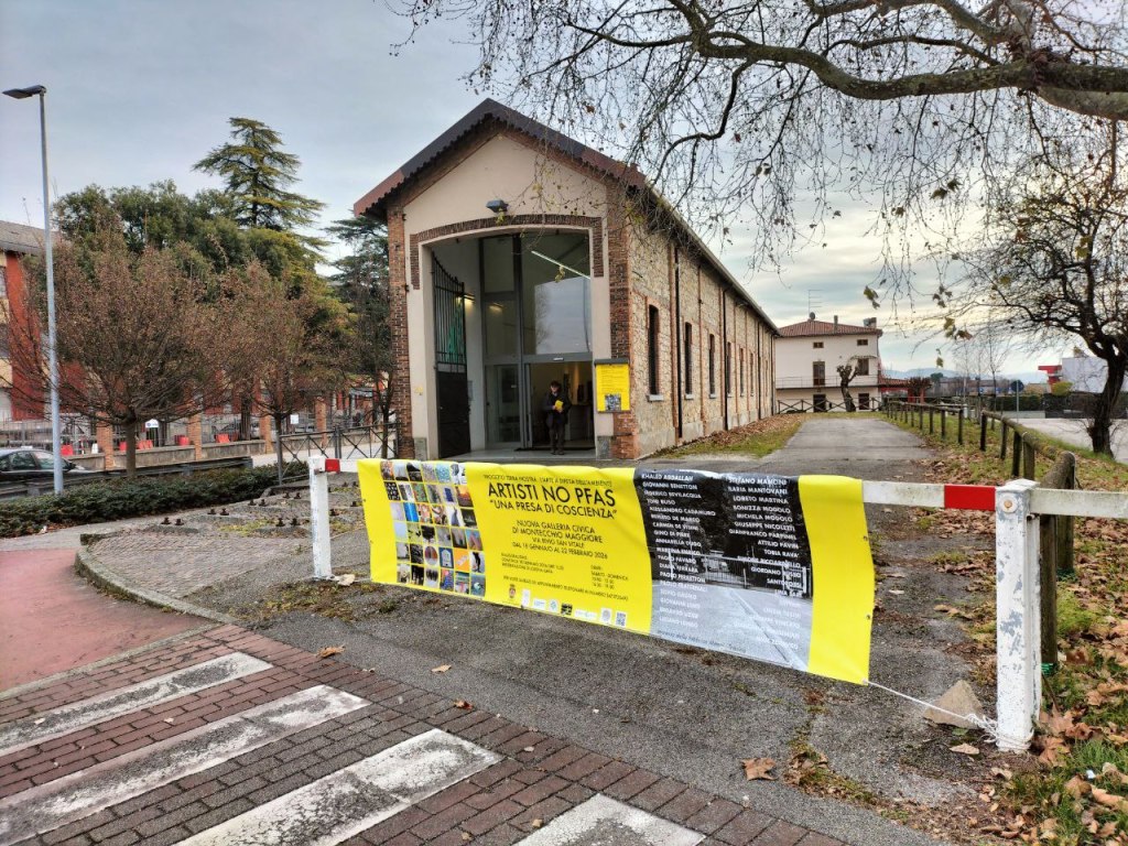Mi spiego. È davvero un fatto straordinario che un collettivo di 30 e più artisti che si firmano No Pfas arrivino proprio a Montecchio Maggiore, città dove è nato e partito – ed è stato pure osteggiato – il movimento No Pfas [3]; dove per decenni la questione PFAS è stata manipolata, sottaciuta, deviata dalla stessa politica che ha amministrato i territori. Ancora oggi.