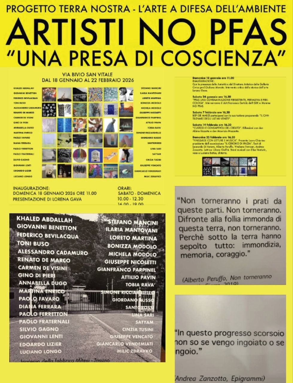 Nella «città dolente», come si legge nella prefazione del libro NTIP da parte del decano della cultura veneta, Francesco Vallerani, arrivano gli Artisti No Pfas.