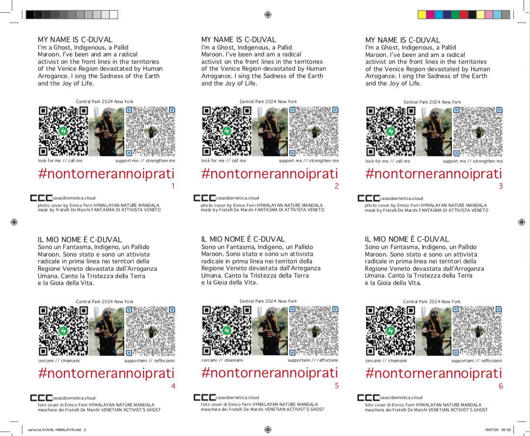 | alberto_peruffo_da_montecchio is c-duval contact me on casadicultura@gmail.com casacibernetica.cloud | CCC performing art on the road to activate critical thinking | I’m a radical thinker. Activist and political artist, publisher, cultural and geographical explorer of marginal territories (with many exploratory expeditions to high mountains), and founder of the Laboratorio Politico di Ecologia and of the Casa di Cultura C (a publishing house and artistic direction laboratory of works and mobilizations), I-and-I collaborates with various independent, national and international cultural research spaces, Italian and foreign universities, to promote paths of active municipalism, democratic confederalism, radical ecologism. |