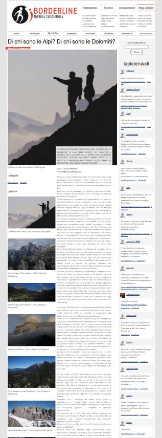 iBorderline.net – attualmente sospeso – è stata l’ultima ramificazione di un progetto culturale nato in rete alla fine del 1999 col nome di Intraisass (qui l’ultima versione), un antico toponimo delle montagne veneto-trentine. L’attuale concept originario – ancora valido (qui la seconda formulazione nel protoblog del 2004) – potrebbe essere riscritto così: «iBorderline è un contenitore di esperienza aperto all’infinito diviso per aree geografiche, un enorme e potenziale ricettacolo per una CULTURA attiva dell’esplorazione, dove per cultura s’intenda la reciproca comunicazione e condivisione dell’esperienza altrui in vista della propria e futura esperienza sulle zone di confine del mondo, in particolare le terre alte e marginali, difficili da raggiungere e da abitare. Pure metaforicamente parlando. Al di là di ogni specifica disciplina. Senza mai separare la cultura dalla geografia, il mentale dal fisico». Da allora in 12 anni più di 400 autori tra scrittori, esploratori, alpinisti, fotografi, artisti hanno partecipato ai lavori producendo migliaia di pagine, fotografie e video.